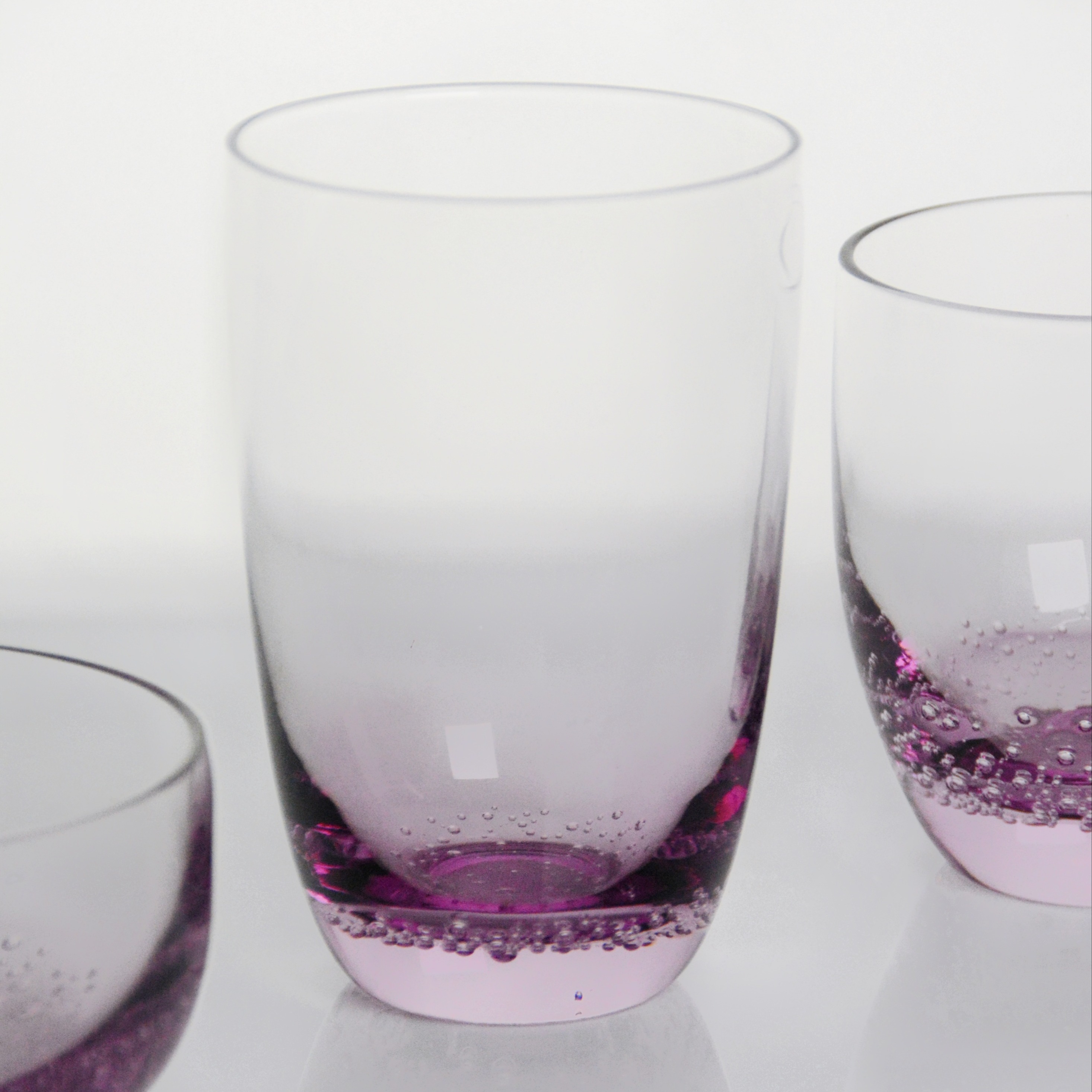 각 컵과 그릇은 독특하며, 거품과 색조의 미묘한 변형이 손으로 불어 만든 공예품을 강조합니다.